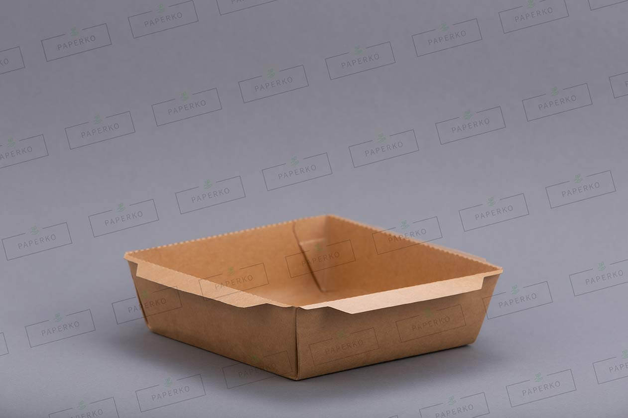 - Характеристики: картон с внутренней ламинацией от 15 до 20 г/м2, не деформируется в процессе транспортировки или разогрева в СВЧ-печи (без крышки), хорошо удерживает жир и влагу.